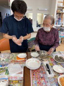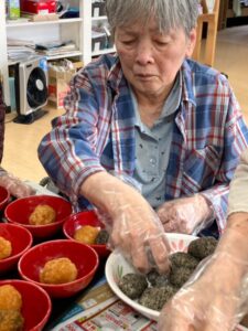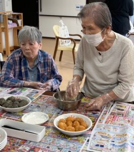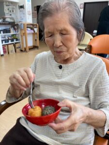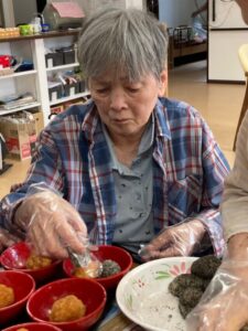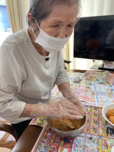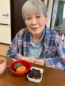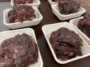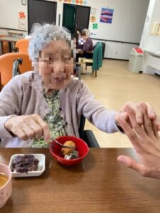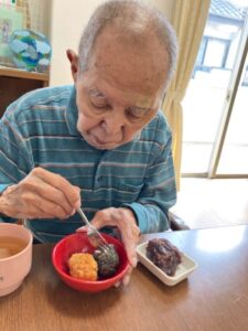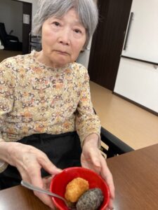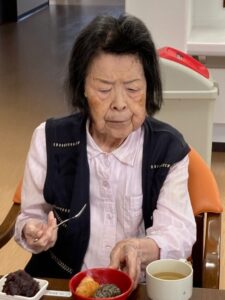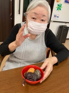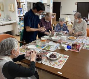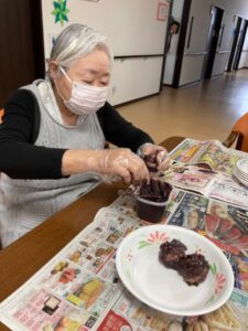 こちらの入居者様には味付けしたおはぎを配膳していただきました。
