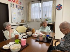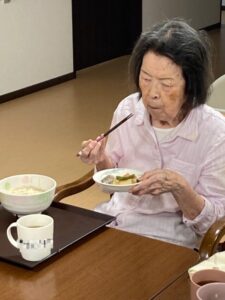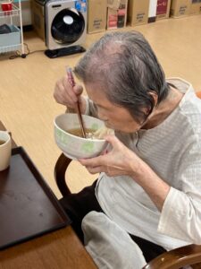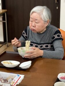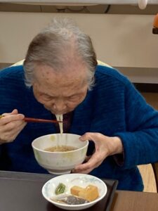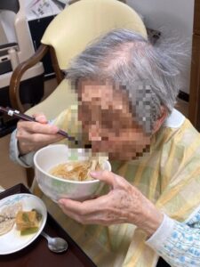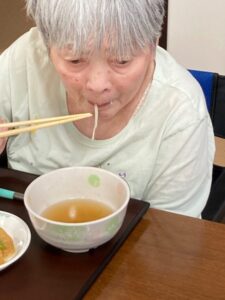 普段、時間をかけて召し上がる入居者様もペロッと。 麺類、お好きなんですねぇ……。