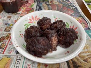 おはぎ、といっても、材料はもち米ではなくうるち米。冷凍ごはんを活用した、”おはぎのようなもの”です。