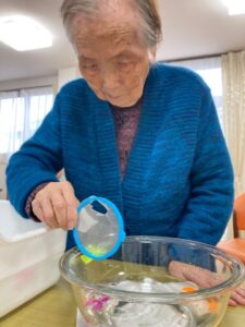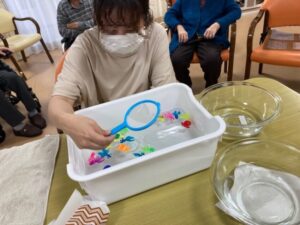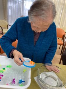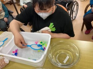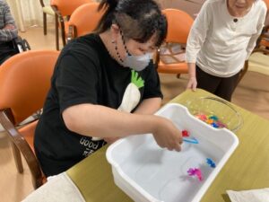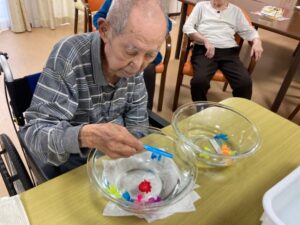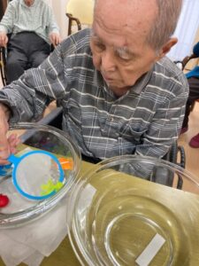 最初は参加をためらわれていた入居者様も、いざ始めると熱中されました。