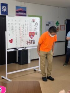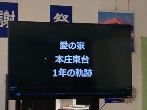 入居者の皆さんが楽しかったこと、お手伝いをしてくださったこと、スタッフのイケてる場面などが動画に流れてきて、時に笑い、時に涙が溢れていました。