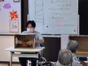 箱の中に手を入れ、触れただけでそれが何であるかを当てていただくゲームです。