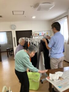 「私は洗濯が得意なのよ」「これはこうやって伸ばすのよ」と、長年の主婦の経験や知恵を活かし、スタッフと和やかに話しながら手際よく作業を進めてくださいました。