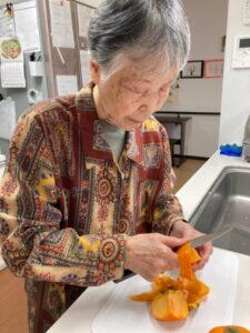 買ってきた柿を丁寧に皮むき。さすがの包丁さばきです!一つ一つ丁寧に、見た目も美しく仕上げてくださっています。