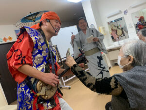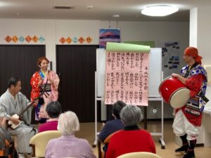 先日、ホームに「大利根名月座(ちんどん屋)」の皆さんが来てくださいました!