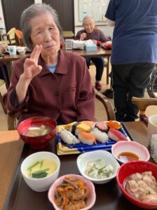 🍰ケーキ🎂だけでなく🍣お寿司🐟でもお祝いしました。