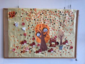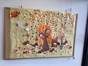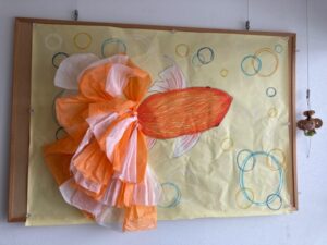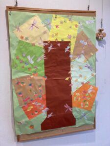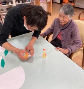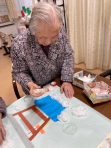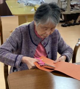 画用紙を切ったり、素材を貼ったり、スタッフも入居者様も一緒になって作り上げました。