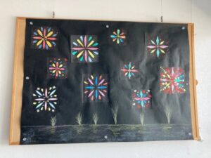 模造紙一面を埋め尽くすほどのにぎやかさが、秋の夜長を彩る1枚です🌾(月見草)