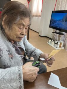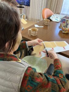 「少し難しいわね」とおっしゃいながらも、皆さま真剣な表情。 指先をしっかり使って、ラインに沿ってカットしていきます。