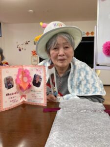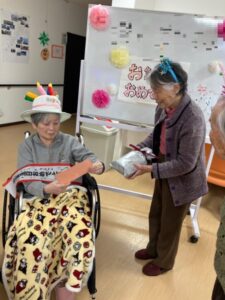 プレゼントとバースデーカードは、入居者さまに代表でお渡ししていただきました。