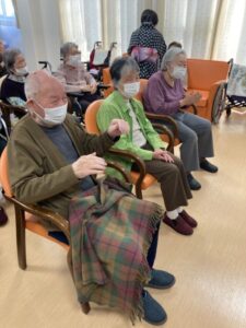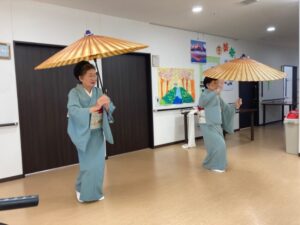 扇や蓮の花のような小道具を使った繊細な動きに、ご入居者の皆さまも「綺麗だねぇ…」と目を細めて見入っていらっしゃいました。