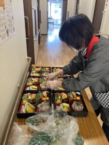レンコンの飾り切りや、一品をフィルムに盛り付けたり