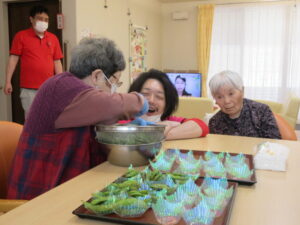「ここに入れて!」とスタッフが口を開けて待ちますが