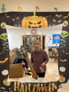 お菓子をもらった後は写真スポットで記念撮影です📸