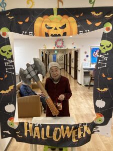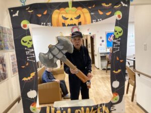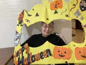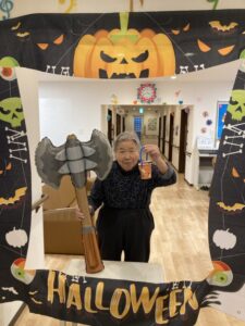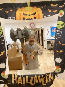 お菓子をもらった後は写真スポットで記念撮影です📸