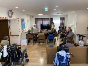 毎日恒例の全員での体操の時間、入居者様に管理者から挨拶m(_ _)m