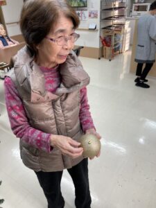 オーナメントを手に取り笑顔の利用者様も満足そうです。。