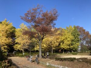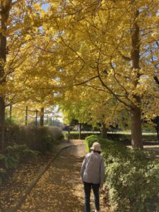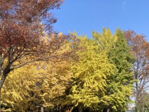 近くのお散歩コースに見事なイチョウ並木がありました。