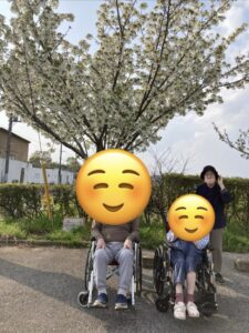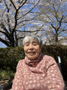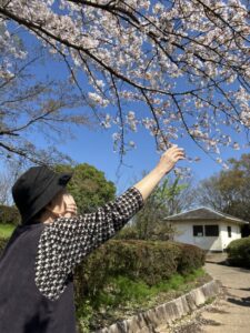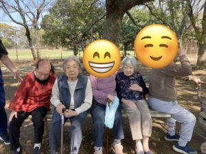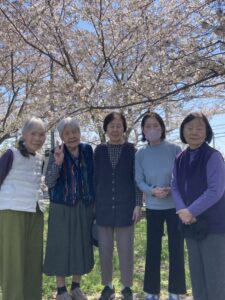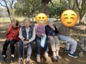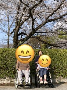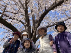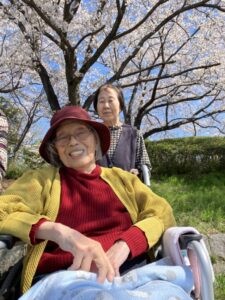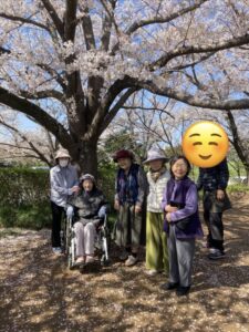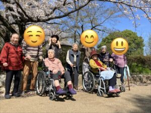 車椅子の方はスタッフが押して公園まで日光浴をしながら花見に行きました。