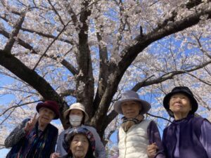 毎日の散歩を少しずつ距離を伸ばしご利用者さまたちは目の前の中学校を一周軽くできる程に歩けるようになり(足りなくなってきたくらい)歩いて花見に行こう!と3月月末と4月月初に歩いていきました。