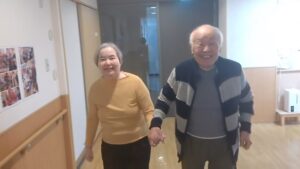 歩行訓練の様子なんですが男性がリードして微笑ましいと
