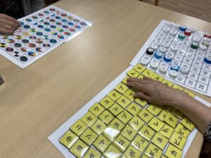 「文字合わせ」「数字合わせ」「模様合わせ」が行われています。