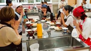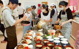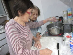 他ホームのスタッフと協力しながら昼食を作りました。