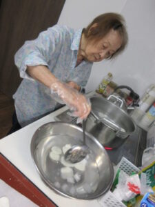 次は、丸めた団子を茹でていきます。