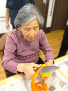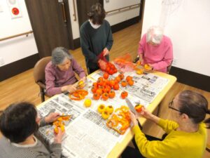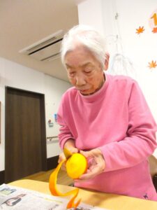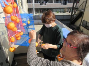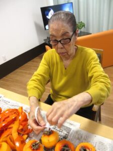 ホームでは毎年恒例の「干し柿づくり」がスタートします。