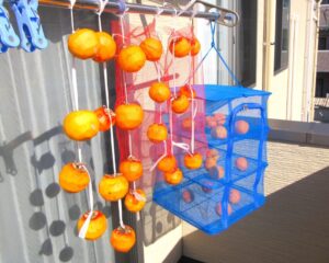 準備が整った柿たちは、ベランダにずらりと吊るされ、