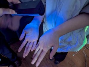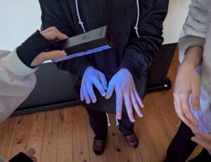 パワポ講義の後は、手洗いチェッカー体験。