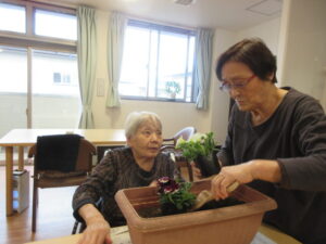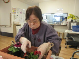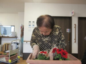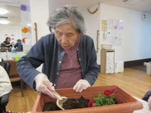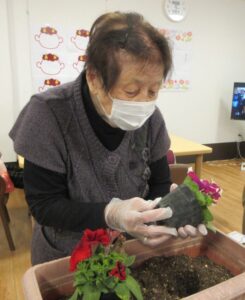 お1人ずつ花を選んでプランターに植えていきます。
