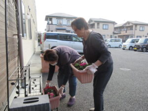 植え終えたプランターを一緒に玄関先へ運びます。