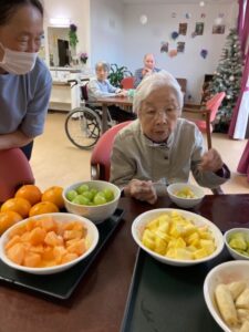 風邪予防と言われていますビタミンCたっぷりのフルーツ盛り合わせにご利用者様もご好評をいただき、普段、食事があまり進まない方も『フルーツが好き!』とたくさん召し上がられてました。