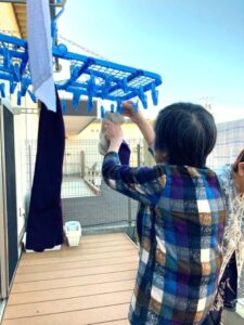 朝晩と日中の寒暖差が激しい日が続きますが穏やかな日にはお洗濯のお手伝い、お散歩を楽しまれています。