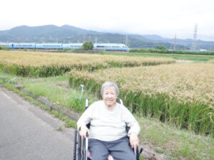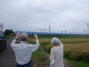 秋空の下、稲穂とロマンスカーの‛共演’をカメラに収める絶好の撮影スポットとして