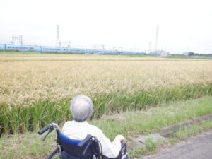 小田急線沿いに田園風景が広がる伊勢原市串橋の田んぼ