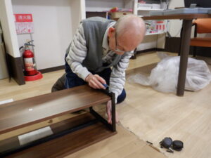 ご自身のお部屋のテレビ台を夢中で組み立てを頑張ってます!(^^)!