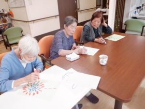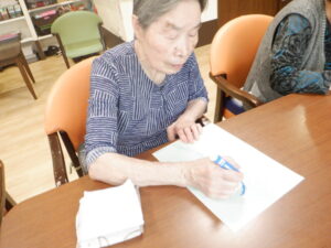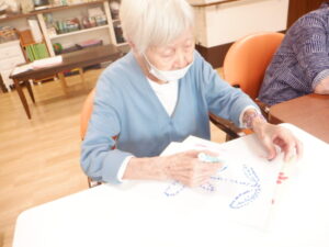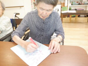 「何にする?」相談して決めたり、職員が下絵を書かせて頂きました。
