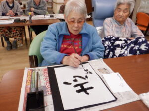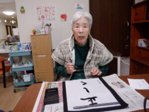 新年を迎えお正月に書初めをしました。