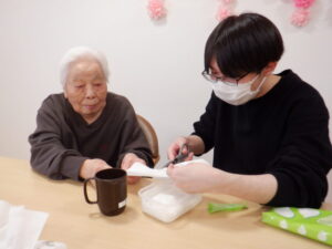 初出勤(4/6)の日、朝食を終えたご入居者様が