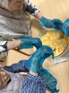 たまごフィリング作りを入居者様にお願いしました(^^)