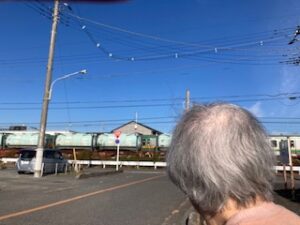 ホームのすぐ近くは電車が通るので見に行ったり。