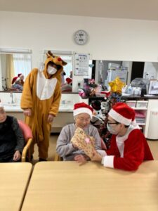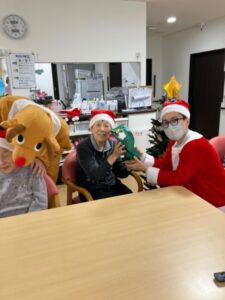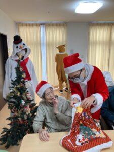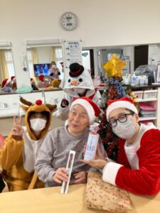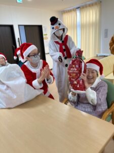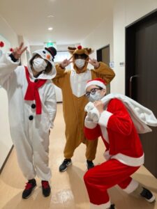 トナカイとスノーマンを引き連れてメガネサンタさん登場!