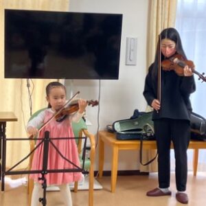 お楽しみのバイオリン演奏会は、ちびっこの演奏で大盛り上がり!