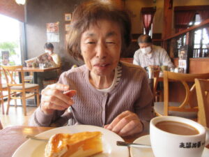 スタッフと一緒に近隣の喫茶店に出掛けられ、アップパイを召し上がられました。
