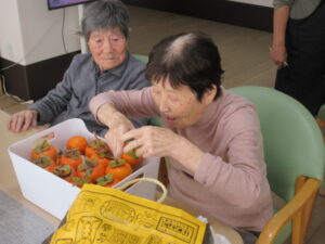 入居者様は外の柿をご覧になって、笑顔で『いいね!いいね!』と。