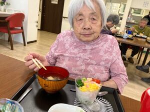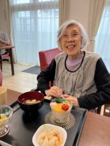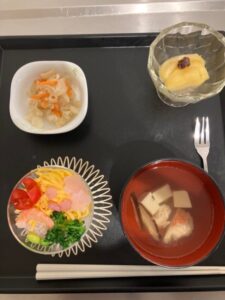 昼食は、調理スタッフ手作りのちらし寿司カップケーキ🥢