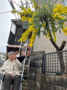 通るたび皆さん「こんなに綺麗に咲くミモザは珍しい」と