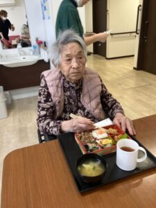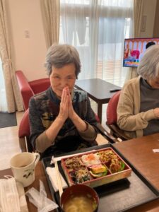 ホームに帰り、皆さんでお花見弁当を食べました🍱